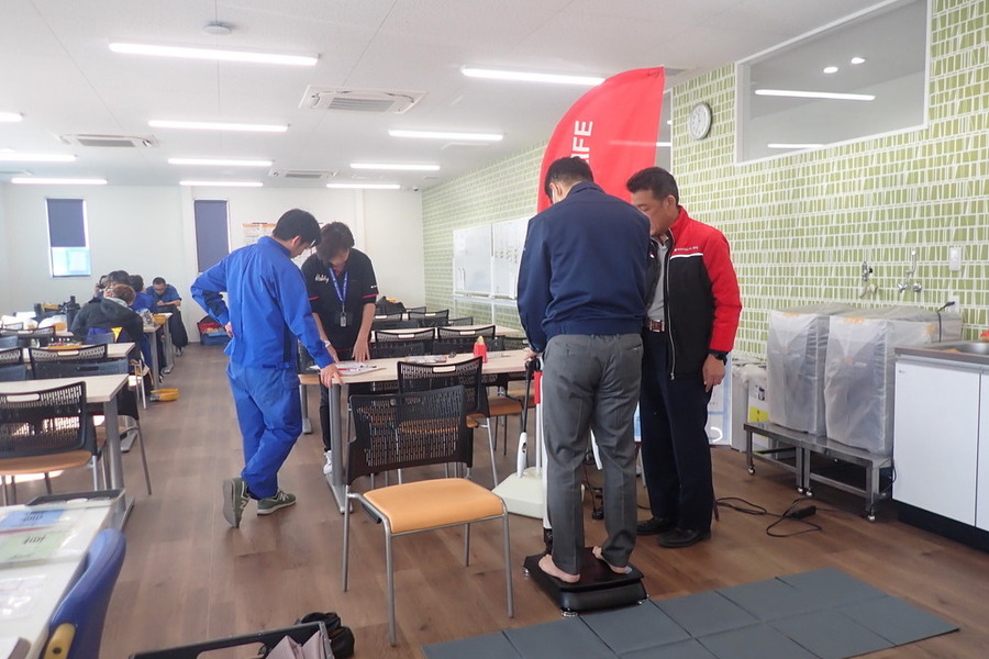 従業員の健康管理としてInBodyを使った体成分分析を、住友生命様のご協力により行いました。筋肉量・脂肪量を機械で測定し、体成分の状態を評価し、自分に合った体重調整計画を立て、健康な状態を維持できるよう、会社として働きかけをしています。